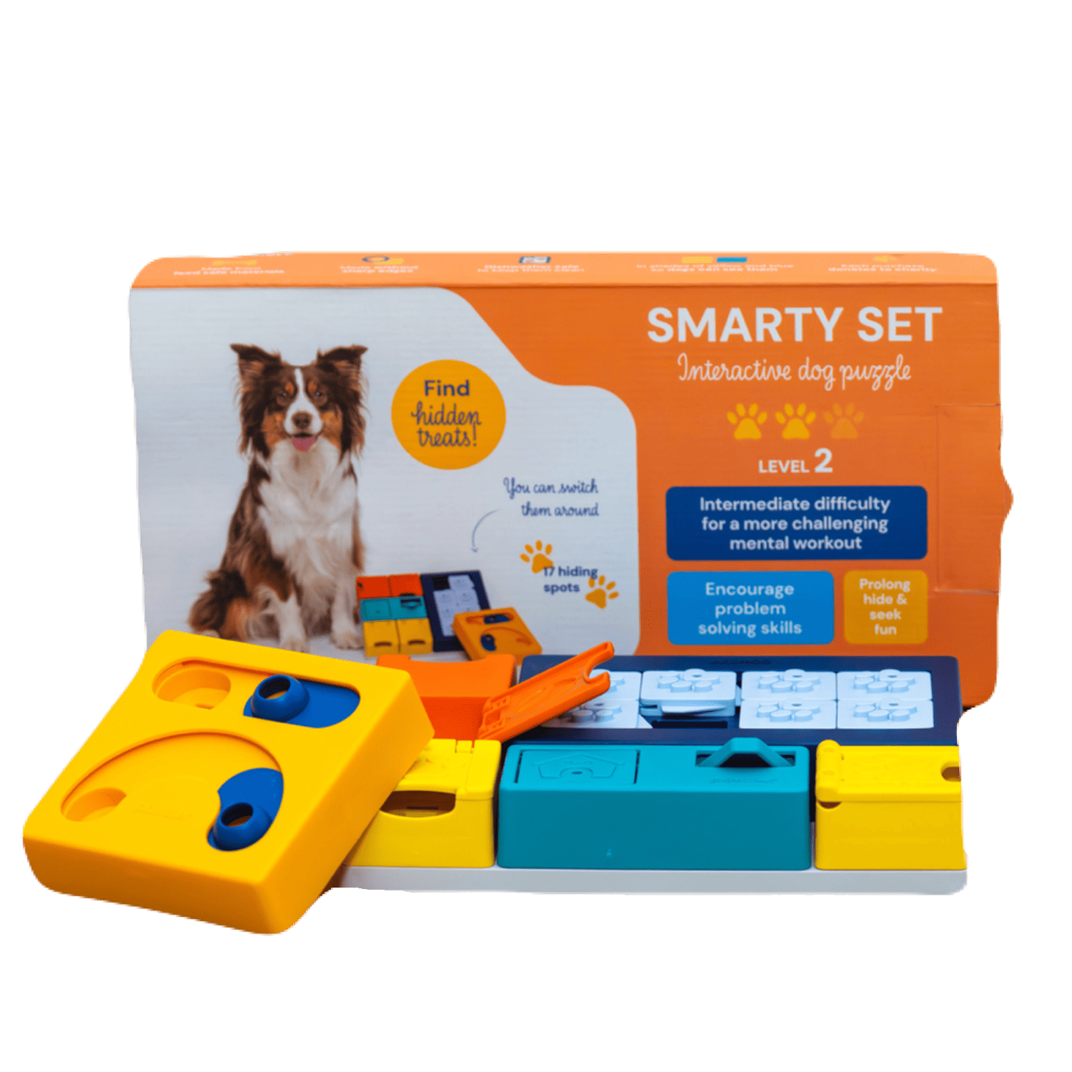中程度の難易度。ビギナーをクリアした犬、 一般的な知育トイ経験犬に向いています。